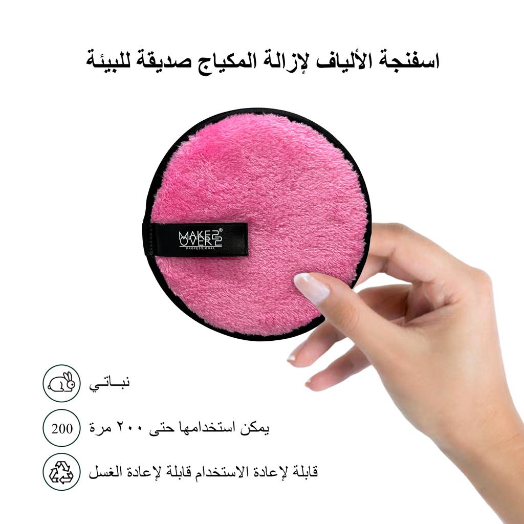 - قومي بإزالة مكياجك بسهولة باستخدام باسفنجة الألياف القطنية من ميك اوفر٢٢ القابلة لاعادة الاستخدام