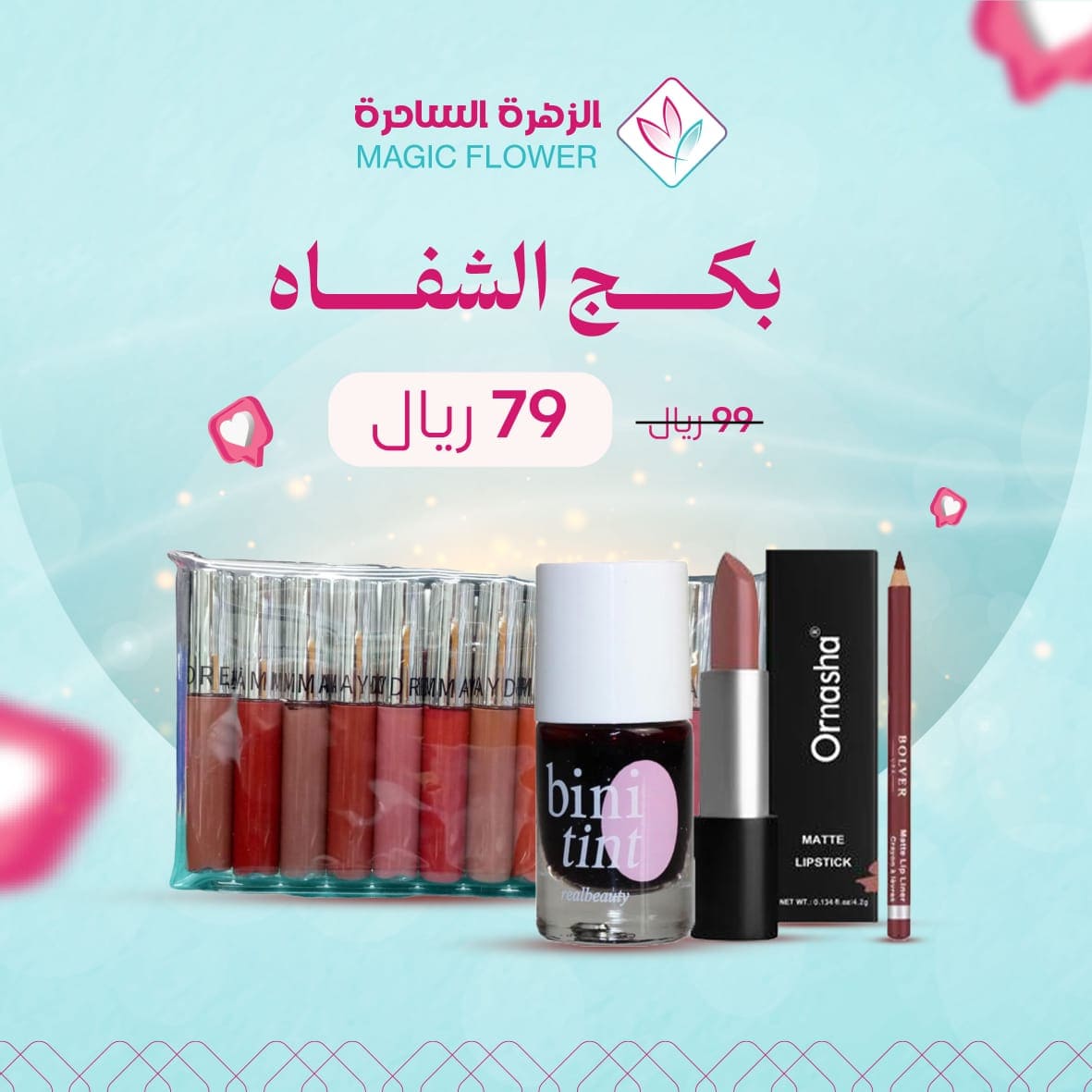 بكج الشفاه - احمر شفاه +محدد شفاه+تينت+مجموعه ارواج