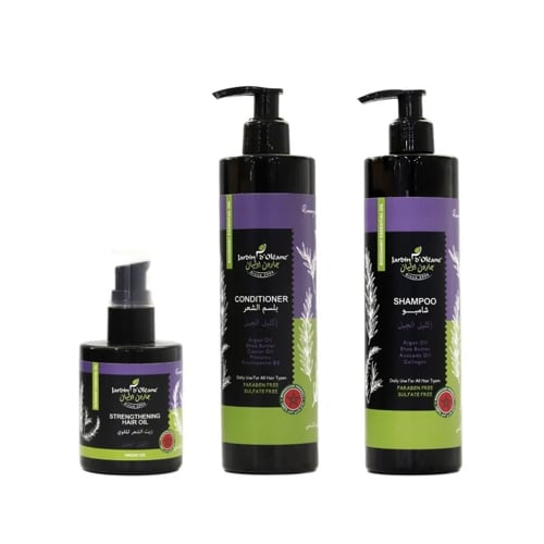 تألقي بشعر جديد مع هذه المجموعة الفريدة بزيت اكليل الجبل للعناية بالشعر