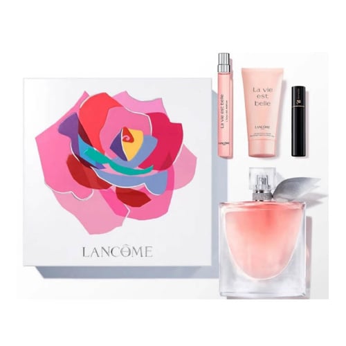 طقم Lancôme La Vie Est Belle – أو دي بارفيوم 100 مل + عطر بخاخ 10 مل + ماسكارا 2 مل + لوشن للجسم 50 مل