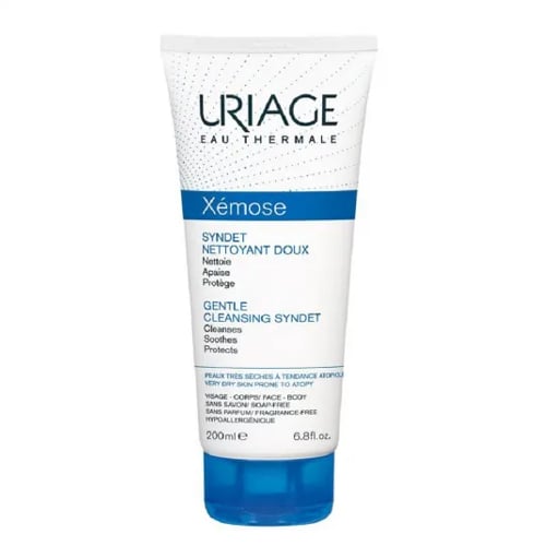 Uriage Xemose Gentle Cleansing Syndet هو منتج للعناية بالبشرة مصمم خصيصًا للأفراد ذوي البشرة شديدة الجفاف لتنظيف البشرة دون التسبب في أي تهيج أو إزالة الرطوبة الطبيعية. تشتهر مجموعة Uriage Xemose بخصائصها اللطيفة والمهدئة ، ولا يعد منظف syndet هذا استثناءً. خالٍ من الصابون والعطور والمهيجات المحتملة الأخرى ، مما يجعله مناسبًا حتى لأكثر أنواع البشرة حساسية. يُنتج المنظف رغوة كريمية عندما يتلامس مع الماء ، ويزيل بفعالية الشوائب والأوساخ والزيوت الزائدة من سطح الجلد. على الرغم من خصائصه المنظفة ، إلا أنه يحافظ على التوازن الطبيعي للبشرة ولا يتركها مشدودة أو جافة.
